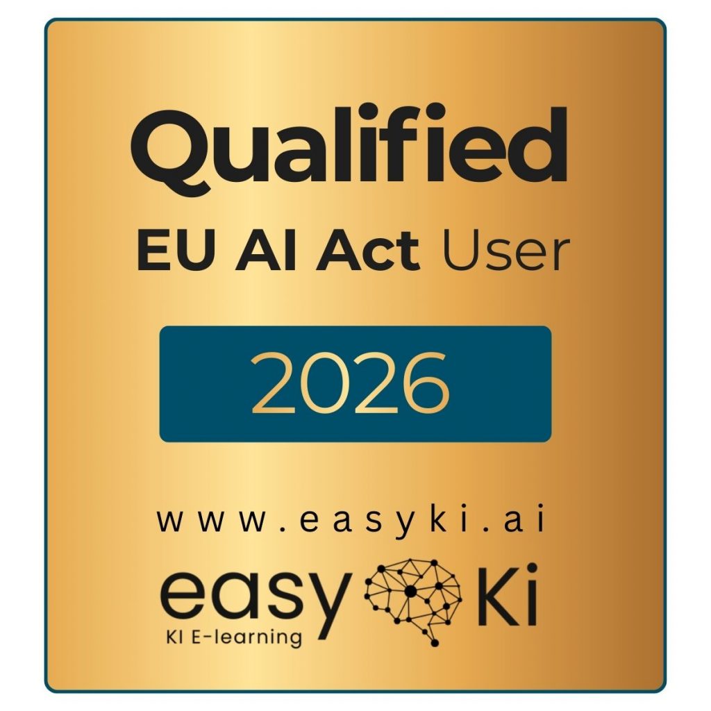 Die Inhalte dieser Schulung erfüllen die Anforderungen an die KI-Kompetenz gemäß dem EU AI Act (Art. 4). Nutze das Siegel als wertvolles Upgrade für deine Expertise: